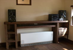新築のお家に蓄熱式電気暖房器「暖吉くん」をひと足早く設置しました。かなりのこだわり屋の奥様でテーマは”自然”!!何から何まで、大工さんの手作りばかりです。この「暖吉くん」をおおっているシェルフも手作りです。おおっと、「暖吉くん」のアピールわすれるところでした・・・LDKなので30畳ほどありますが、ME7000を設置すれば十分です。この冬は、暖炉のような暖かさで心地よく過ごせますね。